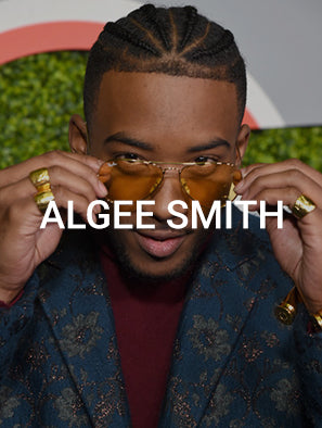 Algee Smith, actor and singer is photographed on the GQ Man of the Year Style Awards red carpet wearing ARMATURE 300 WIN Single Bullet ring and ARMATURE LC80 Bullet cuff bracelet.