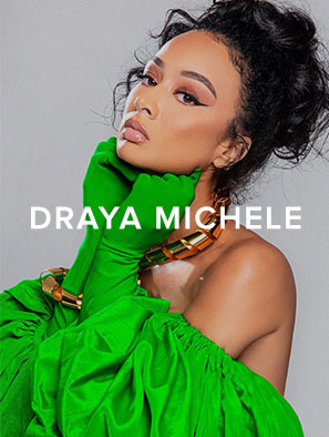 She chose to pair the two oversized pieces from the Wave collection with nothing but vivid green peplum gloves. The color of the outfit made her warm skin tone and the gold curls of the jewelry truly pop.