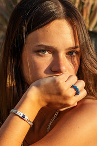 Our Blue Lace Asymmetric Maxi dress in this photoshoot is made using a cornflower colored French lace, from one of the oldest lace mills in the world. This mill has such a rich history spanning many years. For decades, they were renowned as one of the finest lace makers in all of France and even had to bury their lacemaking machines, known as a Leavers looms, during the Second World War so they would not be taken away by the nazis. The mill still uses the same machines to this day to keep the quality at its highest. They weave thousands of miles of thread using shuttles and cast iron to create some of the daintest and most desirable lace.