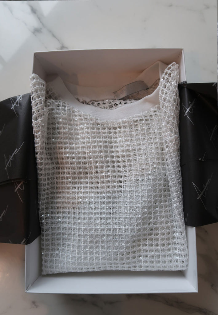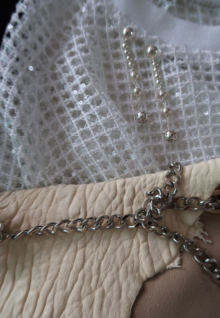 White Crochet-Sequin Novelty Sweater