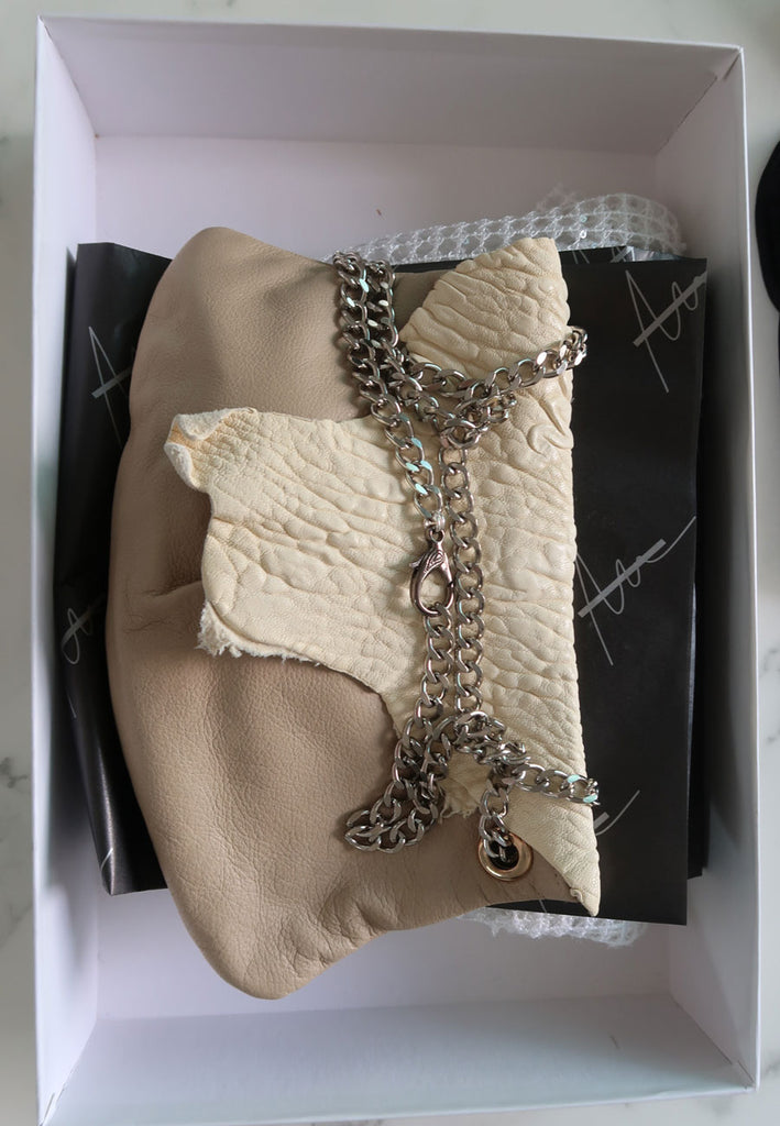 Crafted from repurposed luxury leather, this slouchy saddle bag blends sustainability with classic Western flair. Its soft, supple body drapes naturally, while subtle Western-inspired accents—such as curved paneling and saddle-style shaping—lend timeless character. Spacious, versatile, and effortlessly stylish, it’s a conscious yet fashion-forward accessory designed for everyday wear.